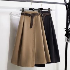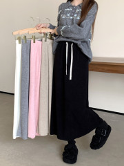 New high-waisted, slim, gentle, lazy style drawstring skirt, versatile A-line mid-length umbrella skirt