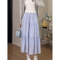 春夏藍白格子半身裙女2025新款春夏小個子A字裙格紋裙子半裙長裙