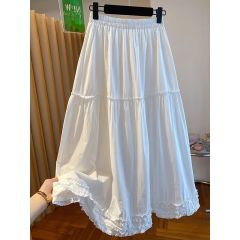 韓系木耳邊白色半身裙女春夏寬鬆休閒百搭a字版長裙