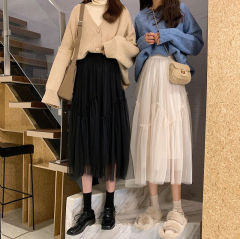 Korean chic Korean pure sweet and spicy ruffled half-length skirt for women in summer, loose loose and tight waist cake skirt