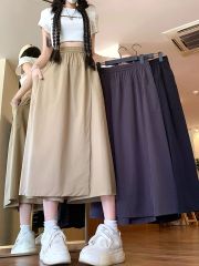 High-end linen cotton beige skirt for women's summer new mid-length loose slim A-line long skirt