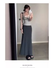 French grey hip-covered skirt for women in spring and autumn new high-waisted A-line umbrella skirt to make them look slim and elegant fishtail skirt