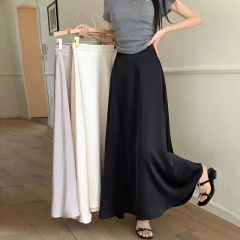 French acetic acid satin fishtail skirt for women in summer new high waist cover hips to make them look thin and drooping A-line long skirt
