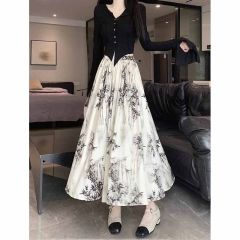 New Chinese style improved cheongsam skirt for women in spring and summer irregular ink painting Chinese style large umbrella skirt A-line mid-length skirt