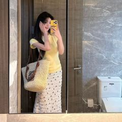 Real photo real price delivery elastic waist skirt looks thin and loose, with buttons in the middle and long skirt