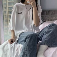 原版外貿韓版夏季字母百搭純棉短袖T恤女新款港味bf寬鬆半袖上衣