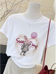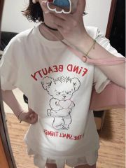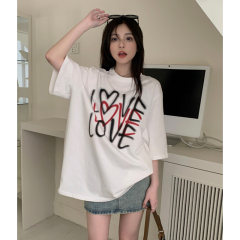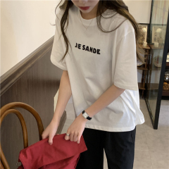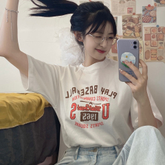 原版足碼外貿韓版新款夏季短袖T恤女韓版寬鬆慵懶原宿上衣chic港