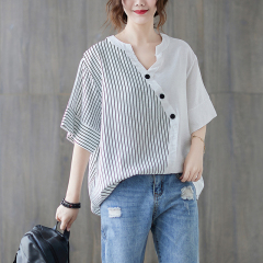 Summer new style fat mm 200 pounds fashionable stitching small V-neck shirt T-shirt