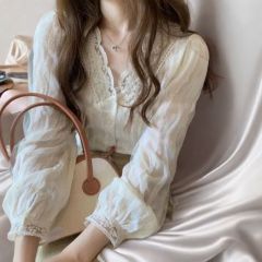 Shirt 2024 lace design with gentle new style French long-sleeved autumn temperament top small fragrance style
