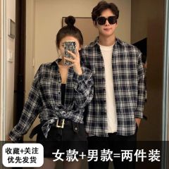【Black and White Classic】American retro national trend simple plaid casual loose fog moon high-end Hong Kong style long-sleeved shirt top jacket
