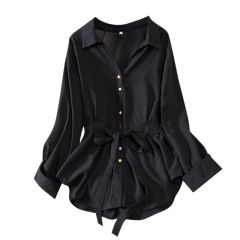 Large size chiffon fashionable and versatile loose shirt new top waist-hugging women's belly-covering and long-sleeved shirt