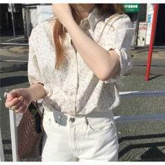 New summer Korean student French sweet student fresh lapel short-sleeved shirt women's floral top