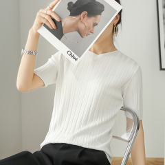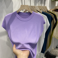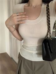 $ 6.60 Sold 112025 summer new knitted thin low-neck hot girl pure and simple slim fit slim T-shirt top