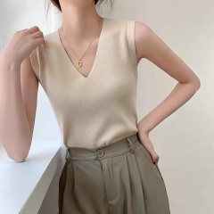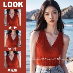 $ 7.10 Sold 17Short knitted suspender vest for women with small suits, elastic sleeveless base shirt