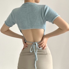 $ 4.70 Sold 9New style short style short and versatile fit with slim V-neck drawstring Knitted Top