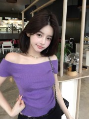 $ 9.80 Sold 19cchun純子 25春夏 純欲辣妹一字肩修身顯瘦多巴胺針織短袖上衣