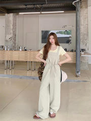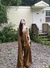 Lazy casual small-tone droopy overalls for women in spring and summer high-waisted retro loose slimming wide-leg suspenders jumpsuit