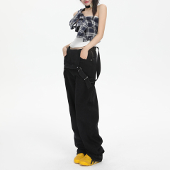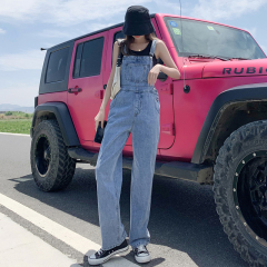 New summer style loose and age-reducing denim overalls, fashionable straight-leg floor mopping pants