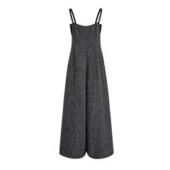 2024夏季獨立站新款純色開叉長褲裙吊帶性感露背綁帶連體衣女