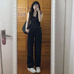 Summer new style overalls for women Korean style high waist loose age-reducing jeans wide leg pants suspenders trousers