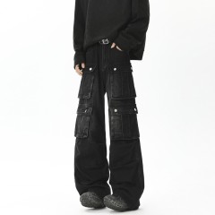 Spring American style straight wide leg multi-pocket heavy duty jeans