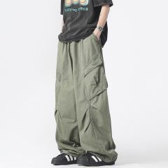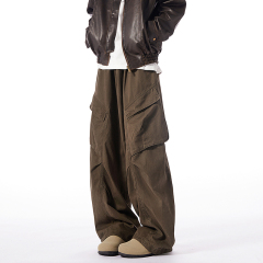 Trendy workwear men's paratrooper pants autumn loose pleated elastic casual pants