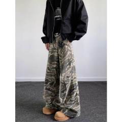 American camouflage overalls, high street, wide-legged, all-match pants for men and women