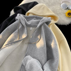 Spring and autumn trendy brand ins hooded simple sweatshirt for men and women, trendy Korean style velvet cardigan casual jacket