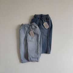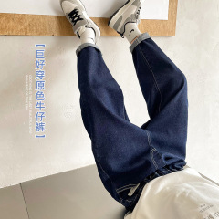 Korean style ins raw edge jeans elasticated casual and versatile fashionable children's trousers for men, women and children in spring and autumn