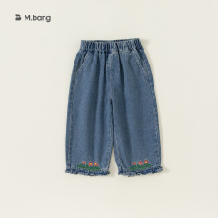 Band selected girl's denim embroidery lace children's pants trendy casual wide-leg jeans QK23002