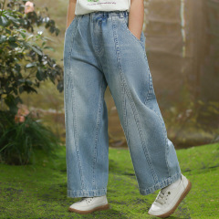 Girls' Jeans 2024 Spring Collection Loose Straight Leg Pants Casual Small and Medium Children's Flared Denim Pants 0109A014