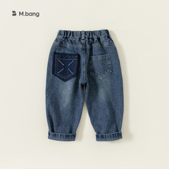 Men's Water-Rinsed Denim Jeans Trendy Kids' Pants 23 Autumn New Arrival Children's Korean Style Sea Mother Home Big Kids Autumn Outfit