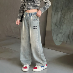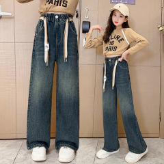Women's Spring Outerwear Pants 2024 New Middle-Size Children's Leisure Straight Leg Wide Leg Long Pants Spring Children's Jeans