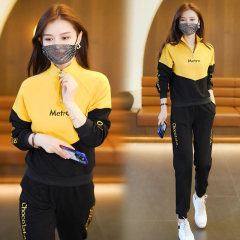 Athleisure Suit Women's Spring and Autumn Round Neck Sweatshirt Slim Fashion Top