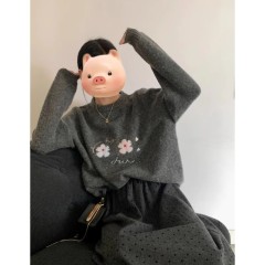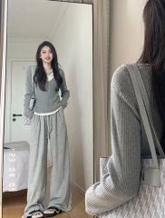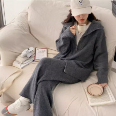Soft and waxy loose stand-up collar zipper sweater knitted wide-leg trousers fashion suit for women