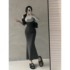 $ 20.90 Sold 8歐美辣妹女裝純欲性感緊身小高領長袖T恤包臀魚尾背帶連衣裙套裝