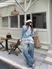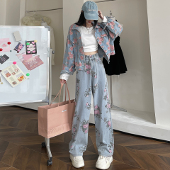 2025秋季新款牛仔外套裝女孩初高中學生寬鬆洋氣百搭牛仔褲兩件套