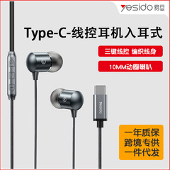 yesido半入耳式有線耳機適用蘋果15華為安卓手機線控耳機一件代發