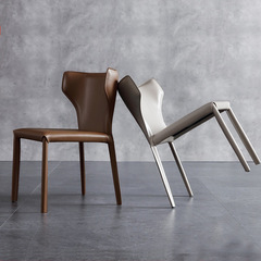 北歐馬鞍皮餐椅家用輕奢靠背椅現代簡約意式設計師樣板間酒店椅子