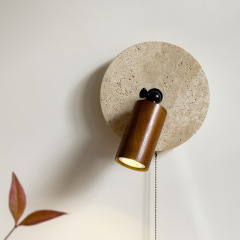 Retro Japanese Wabi-Sabi Style Yellow Stone Wall Lamp for Homestays—Simple Bedroom Bedside Reading Light with Pull-Chain Switch, Hallway Light