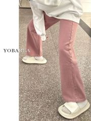 Dirty Pink Narrow Wide Leg Jeans Women's High Waist Large Size Fat mm Loose Slim Straight Pear Shape Body Pants