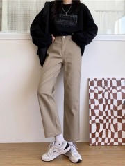 2024 new versatile khaki drape suit pants for women spring and autumn nine-point loose high-end straight cigarette pants