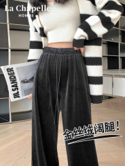 Women's winter new style velvet and thickened casual pants, loose slimming wide-leg pants, straight-leg trousers, floor-length trousers
