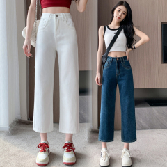 Spot Korean version of blue high-waisted casual pants for women in summer loose wide-legged Harajuku style casual all-match straight trousers