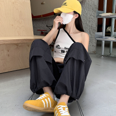New ice silk mask overalls for hot girls, air-conditioned pants for outer wear, sun protection, slimming, casual straight pants