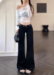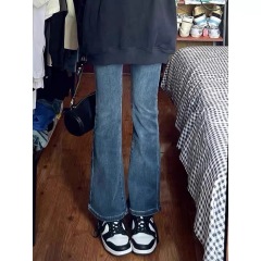 Retro blue micro-flared jeans for women in autumn and winter new high-waisted straight slim slimming wide-leg pants trendy