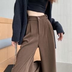 Corduroy zipper drape suit trousers wide leg trousers high waist casual autumn straight trousers
