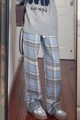 New Autumn/Winter Drawstring Checkered Casual Pants for Women 2023 Retro Droopy Trend Loose High-Waist Straight Leg Wide Leg Pants