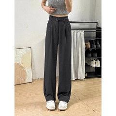 Design sense niche suit casual wide leg trousers women's summer small high waist slim loose straight pants