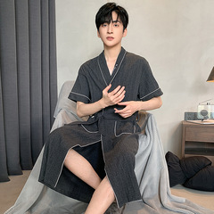 Men's Spring and Autumn Season Thin Cotton Casual Short Sleeve Robe, Loose Hotel Bath Robe for Teenagers and Home Wear, Plus Size